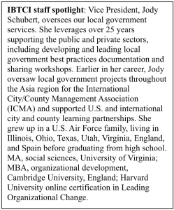 U.S. local governments today face unprecedented challenges, from budget pressures and shifting federal responsibilities to rapidly evolving citizen expectations. IBTCI helps local government leaders rise to priority challenges by aggregating and sharing best practice approaches around key issues through our Local Government Gateway.